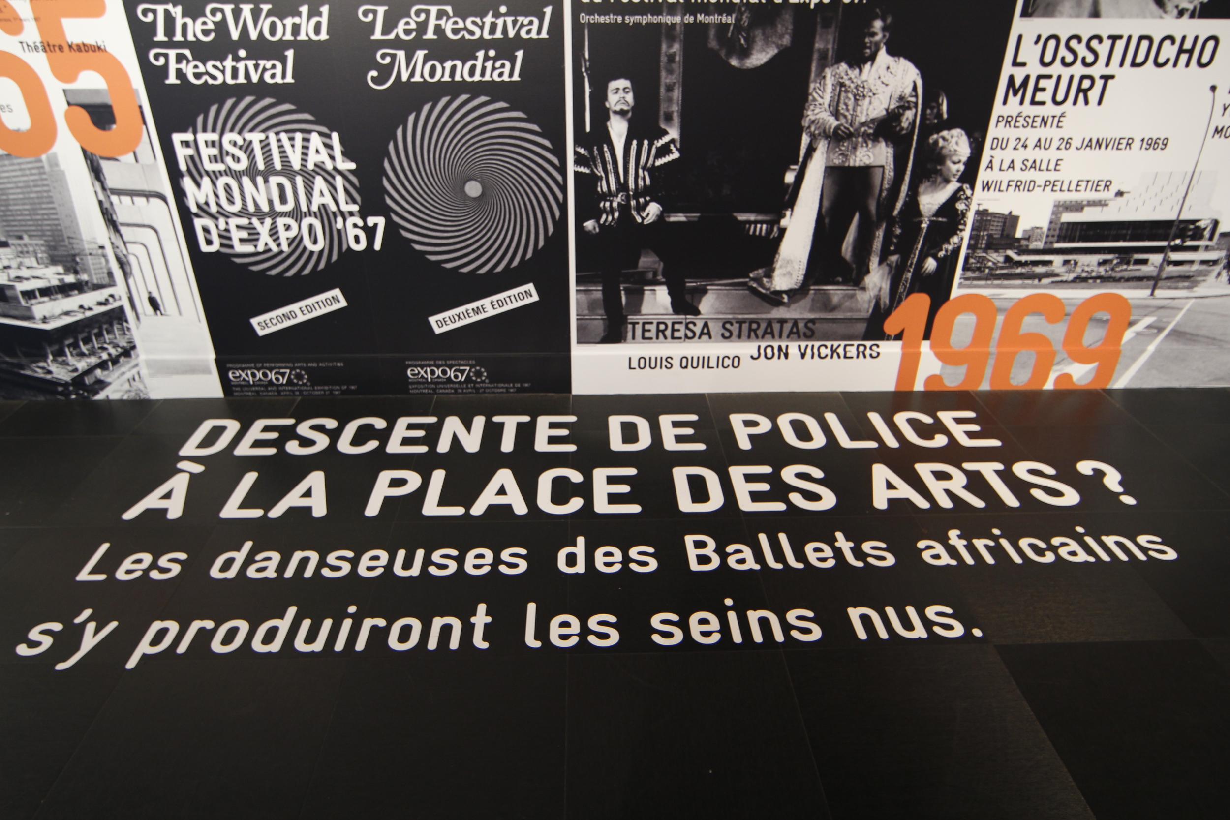 Située dans l’Espace Culturel Georges-Émile-Lapalme, l’exposition invite les visiteurs à pénétrer au coeur des archives qui envahissent tout l’espace. La disposition pêle-mêle des informations et artéfacts propose une visite à plusieurs niveaux de lectures. Les dates orange agissent comme des repères chronologiques et ponctuent l’espace.